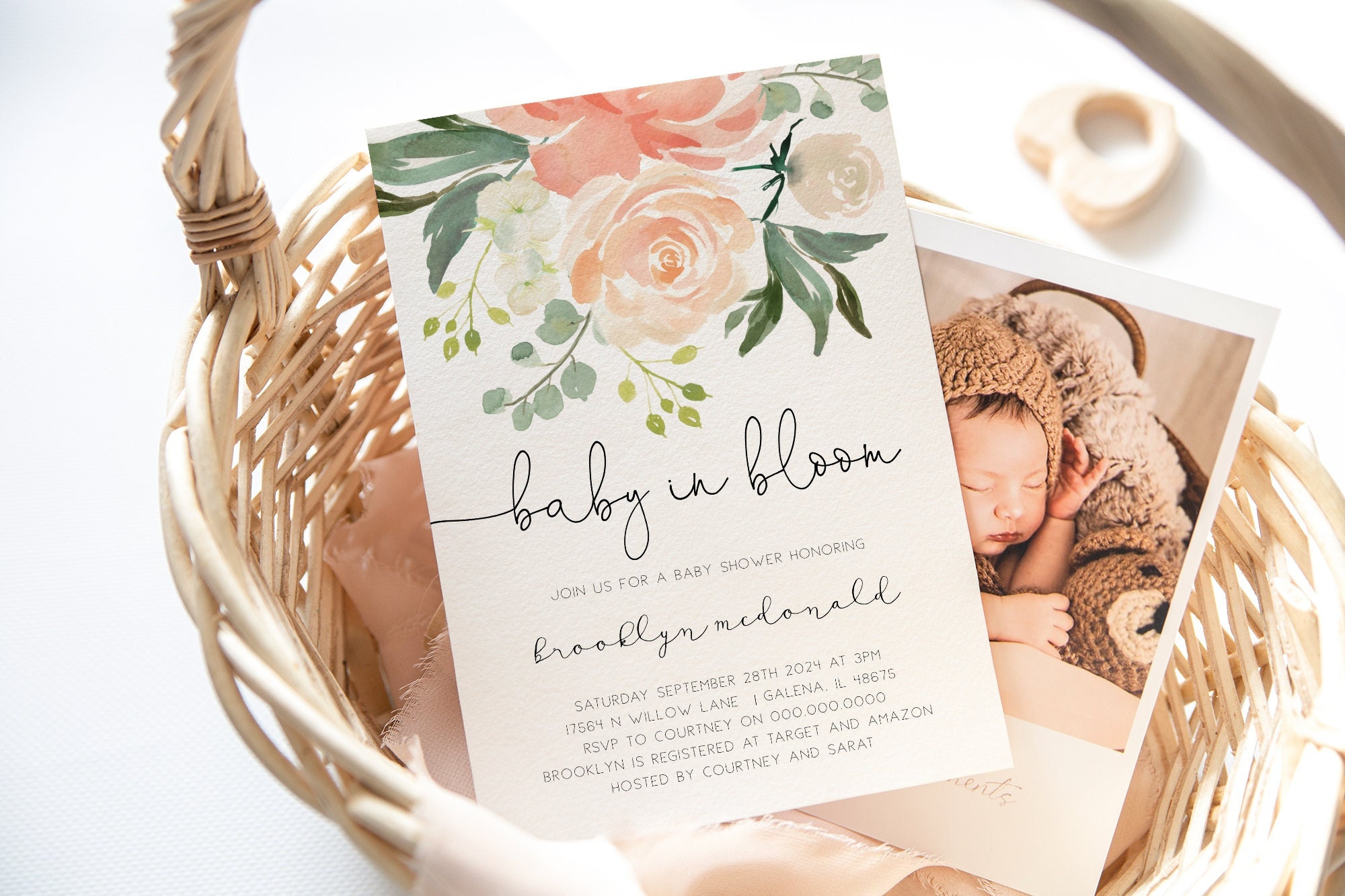 Greenery Peach Baby Shower Invitation Peach Baby In Bloom Etsy